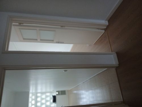 Os quartos têm roupeiros; um deles dá para uma varanda. O outro é mais esquio, sob o comprido e tem casa de banho.